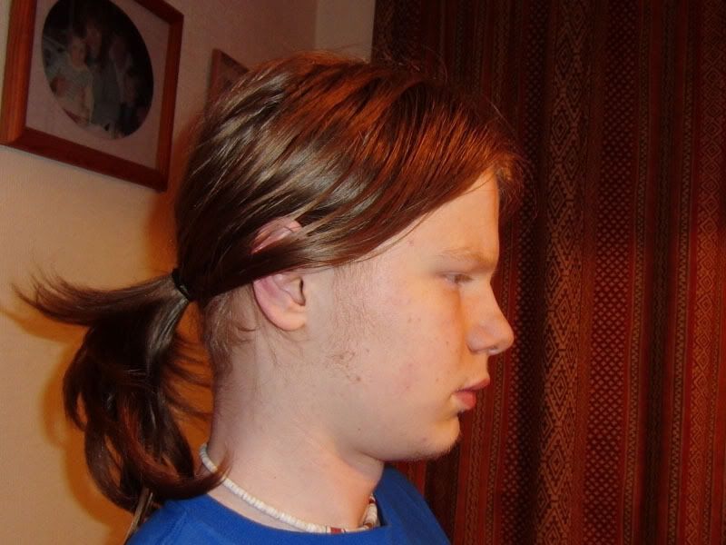 Ears, picture #4. I'm looking down slightly in this shot, but you can see the top of the join between ear and head is about the same as eye level, the bottom around the same level as the tip or base of the nose.