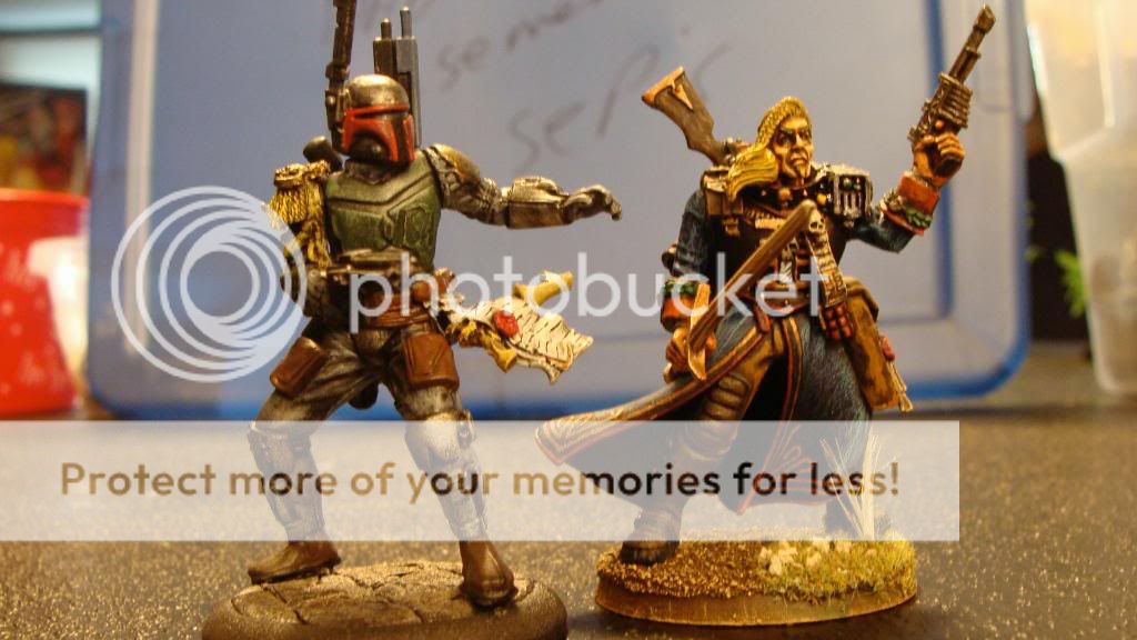 I know the fett figure is iconoclastic but I thoought I had 40k'd it up enough to pass. Oh well I like it.  I also use the snow troopers in that line as my Imperial Storm Troopers.  I just re-painted them to match the Inquisitor color scheme.