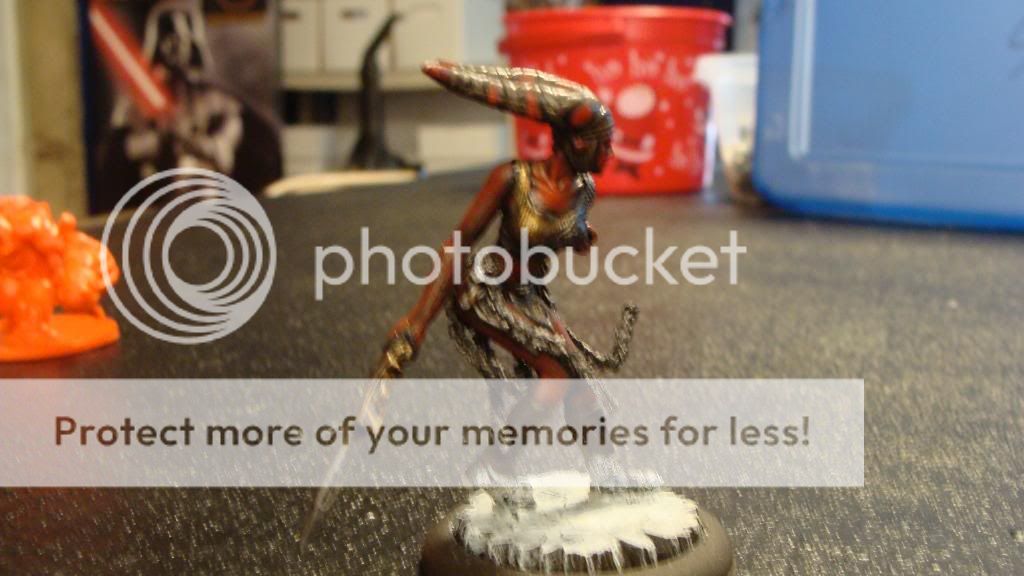 Lastly here is my finished Warp Witch. She is an alien species found in the outter most reaches of Imperial Space by Inquisitor Rasputin and she has become a loyal assassin and death cultist to his nefarious cause. She has a unique ability to sniff out warp related items like a "hound dog" and once she has the scent she is relentless.