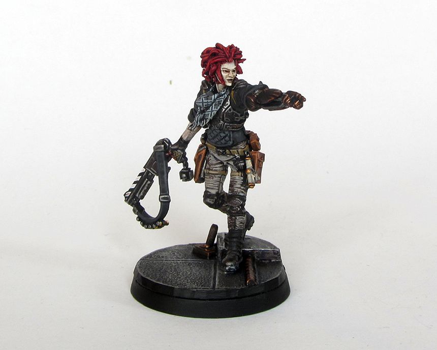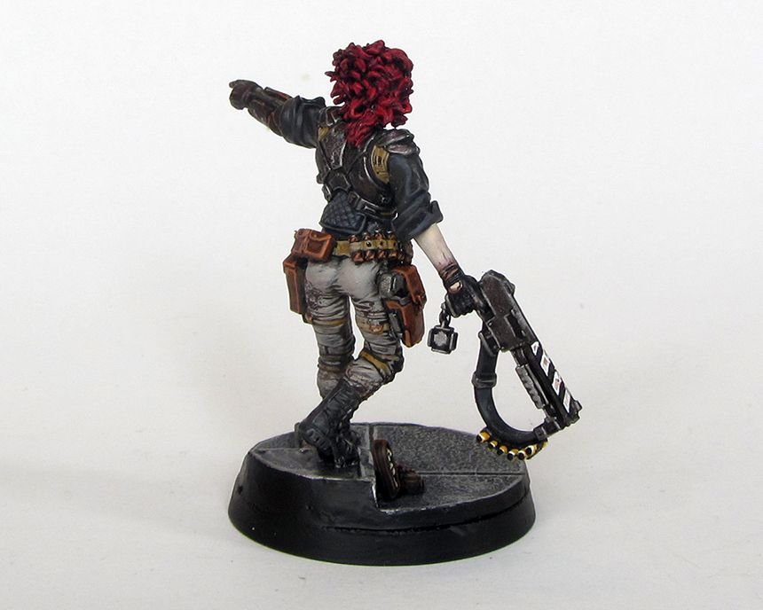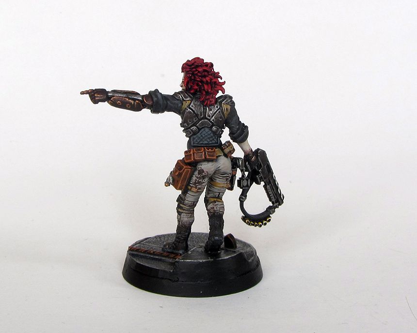 Finally got round to finishing/updating my second warband member, ex-military smuggler Hecate Trellio. For anybody who remembers or cares to scroll back through the thread, she originally sported a blank white bionic arm and bland shotgun. The original intention was to make it stand out and to show that despite her fairly rough 'n' ready appearance, she was well-connected enough to earn a decent prosthetic.