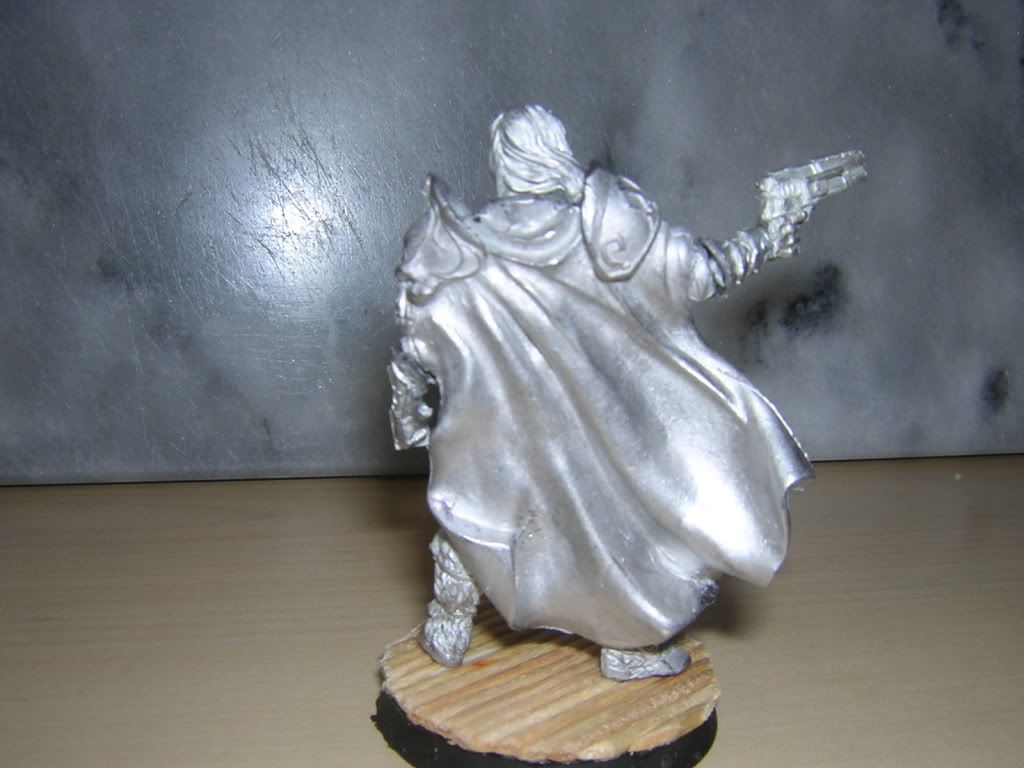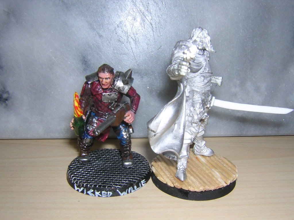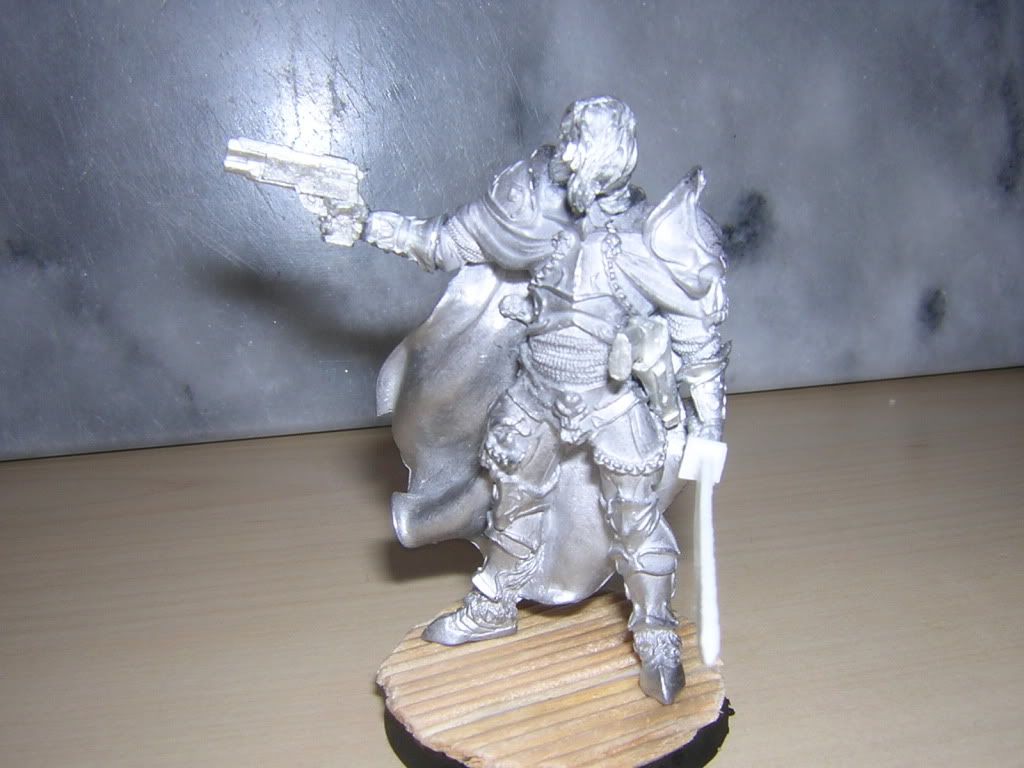 Still I'd like to get comments on the feel and character of the model - he stands at about 56mm. Does he look oversized? or could this largeness be accounted for by his large suit of armour combined with being relatively tall? I've been told that Slick Devlan is one of the smallest of the GW =][= characters, so is the size difference acceptable? Anyway, as usual, all comments/criticism greatly appreciated.