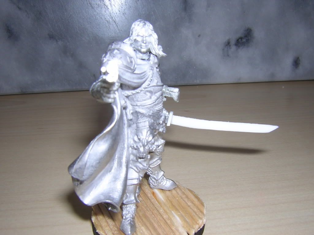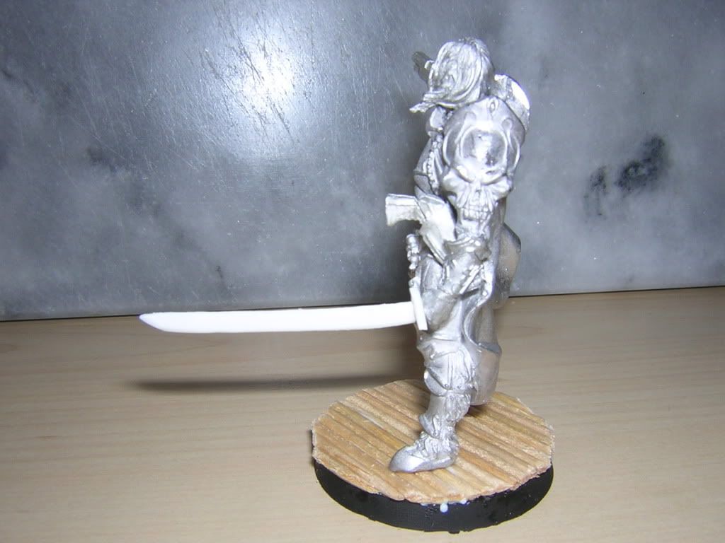 The floor iis going to be painted up like bamboo to fit his samurai background. The katana was made from scratch using plasticard and was in fact the first weapon (or anything) i've ever made from plasticard.