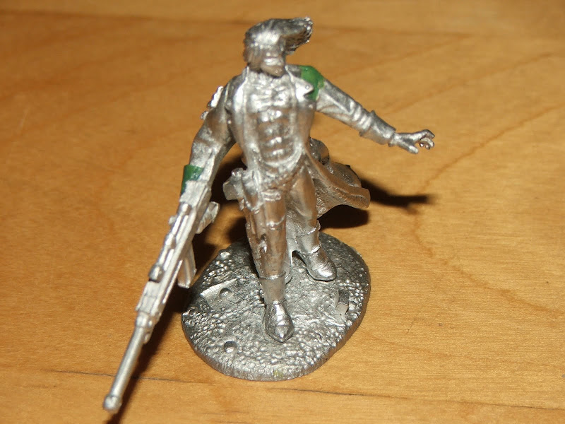 It's based off Andrea's blade of eternity which turned out to be a touch slender in build, possibly too much so for the shield I wanted to use.  The sword is going to be switched for something shorter and nastier looking - I decided to go with toxin coated knives.  Still, the judge head used has a suitable air to it, and following a bit of greenstuffing, he even has his own beard
