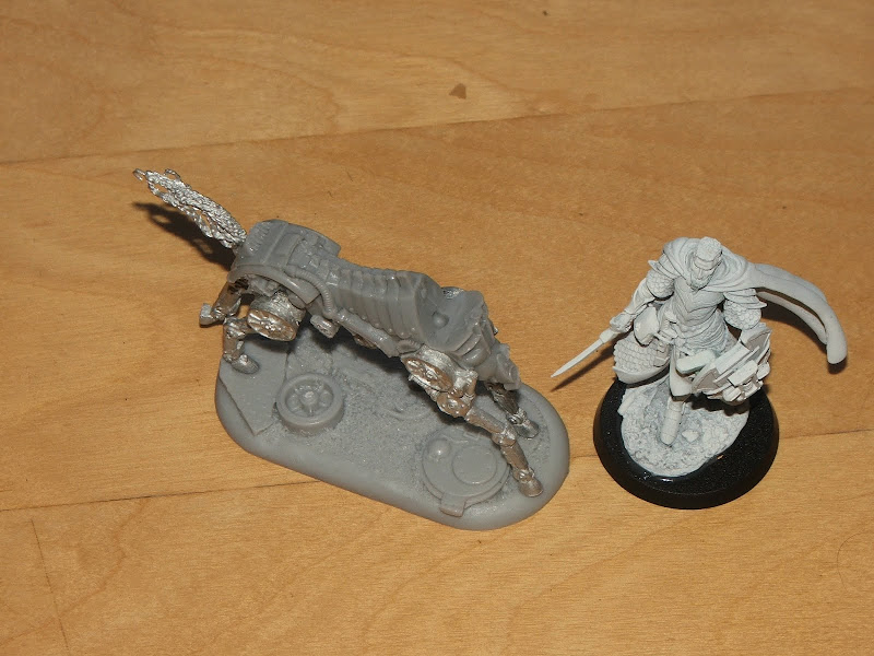 I'm going to have to add the head from somewhere else, and 'de-mechanise' it slightly', but it's a nice sculpt.  Here's a comparison shot - it's just above his shoulder height, which is fairly big as horses go but a good scale.  It's a pretty good cast as well, so I'd certainly recommend the company (Taban miniatures).