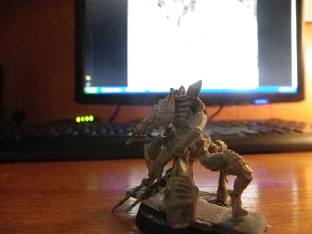 sorry for the sheer amount of pictures, there where so many different angles that only showed so much. I'm no photographer, but I hope I got the essence of the model.  This is the just the first step, once I get some green stuff I'll tidy it up and make it look more biological and bug like. I hope you enjoy!